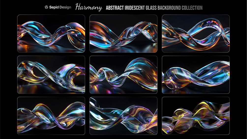 You'll get a collection of 12 High-Quality Iridescent Glass Backgrounds
